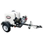 This powerful SIMPSON® cold water mobile pressure washing system will handle all your commercial jobs. It is perfectly suited for contract cleaners, mobile detailers, municipalities, and resorts. The trailer is dot certified as an over-the-road pressure washer system. Job-Site set-up is a snap. Pull up to the work area, connect the spray gun, start the engine and begin cleaning. Equipped with a (49-State compliant) HONDA® engine and reliable CAT PUMPS® triplex pump.